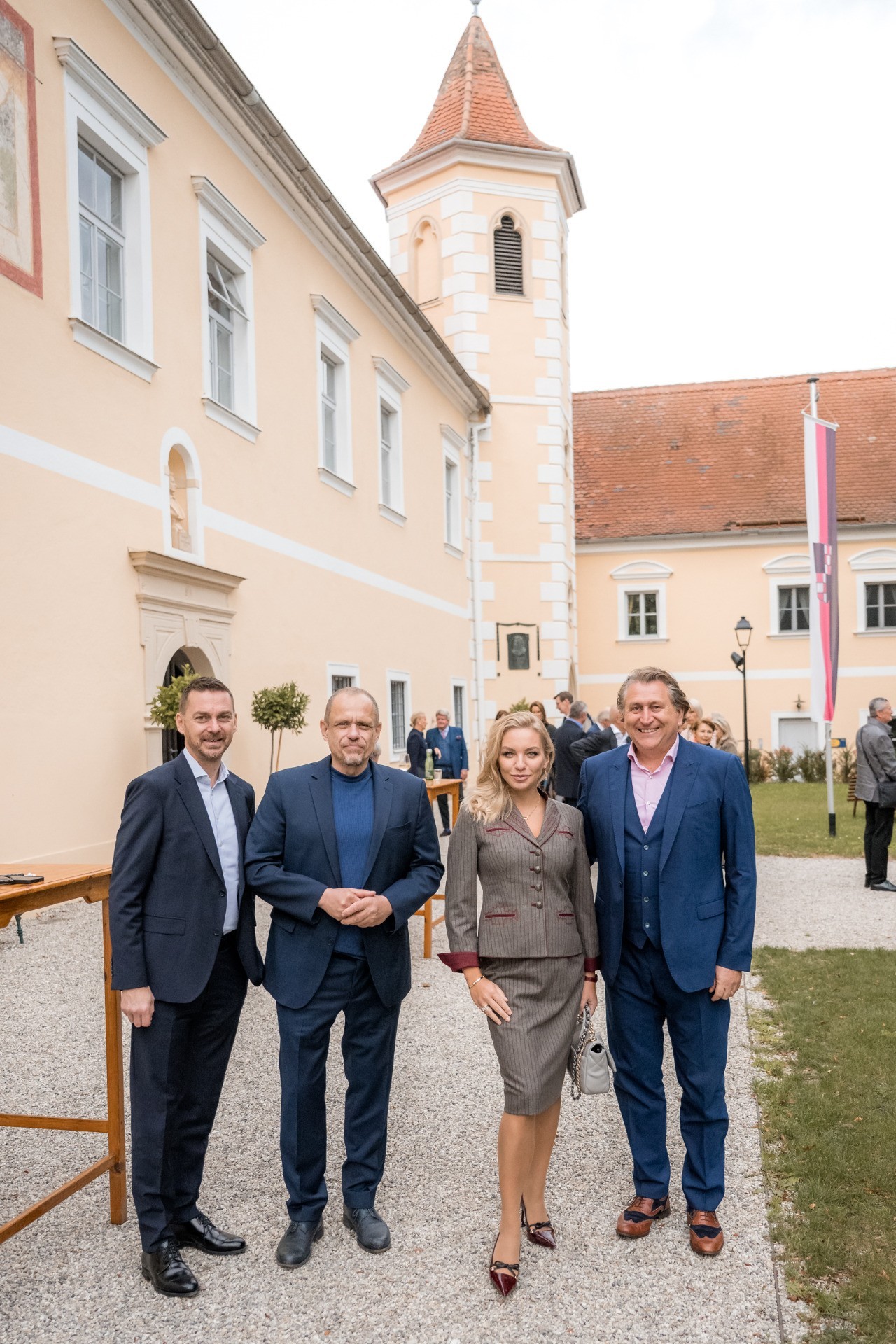 den Grünen Hügel von Bayreuth gegen das sanfte Rosarot des Schubert-Schlosses, an seiner Seite Ehefrau und Star- Geigerin Lidia Baich. Mezzosopranistin Zoryana Kushpler glänzte gemeinsam mit Ehemann Mikhail Bron, amfAR-Gala-Salzburg-Veranstalter Gery Keszler erschien mit Lebenspartner Miha Veberic. Neben Bürgermeisterin Beate Jilch, ORF-Moderatorin Eva Pölzl samt Unternehmer Alfred Reinprecht , Schubert-Experte Oliver Woog, Astrologin Eva Vaskovich-Fidelsberger, Unternehmerin Karin Meier-Martetschläger und Mediziner Benno Ostermayr sorgte eine große Unterstützerin von Schloss Atzenbrugg für Aufmerksamkeit: Elisabeth Gürtler, Grande Dame der Hotellerie, mietete für ihren Freundeskreis einen der Nebensäle an und lud anschließend zum exklusiven Künstler-Dinner in ihr benachbartes Schloss Aumühle: „Ich wollte hier immer einen Platz zum Feiern schaffen, damit man sich – wie seinerzeit die Schubertianer – daran erfreuen kann“, so die Gastgeberin. Das ist ihr eindrucksvoll gelungen – umso besser, dass man ihr Refugium ebenso wie das Schubert-Schloss Atzenbrugg für Hochzeiten und besondere Festivitäten anmieten kann.