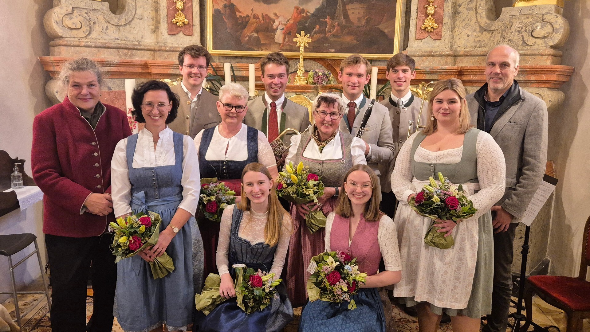 Andrea Tauber, Michaela Ströger-Knöpfl, Maria Knöpfl, Pia Ströger und sitzend Katharina und Veronika Tauber, Organist Johannes Zeinler, das Ensemble H3 – Thomas, Johannes und Martin Honsig, mit Bürgermeisterin Beate Jilch und